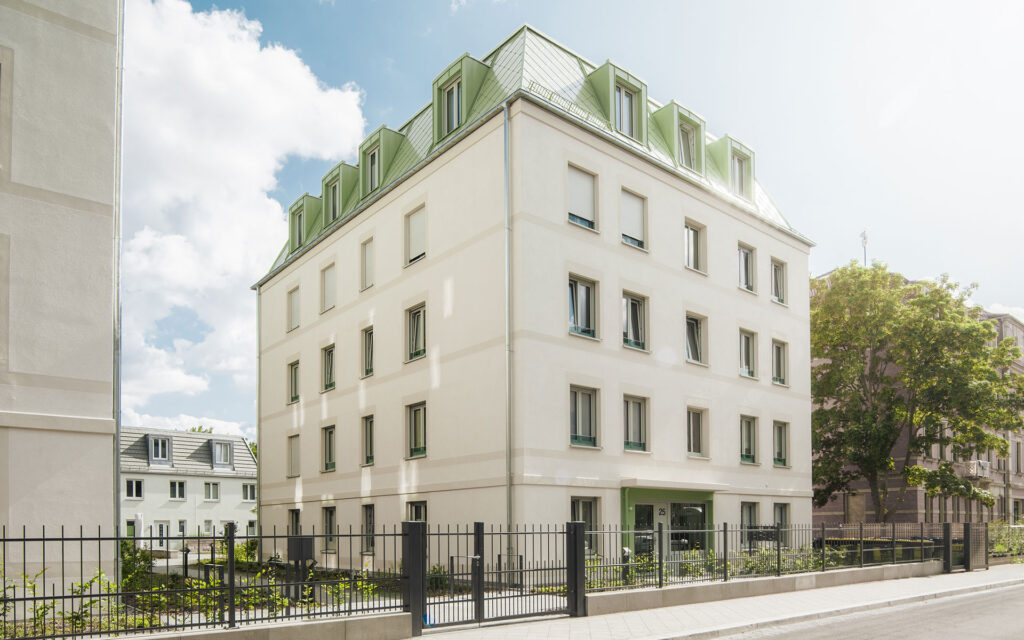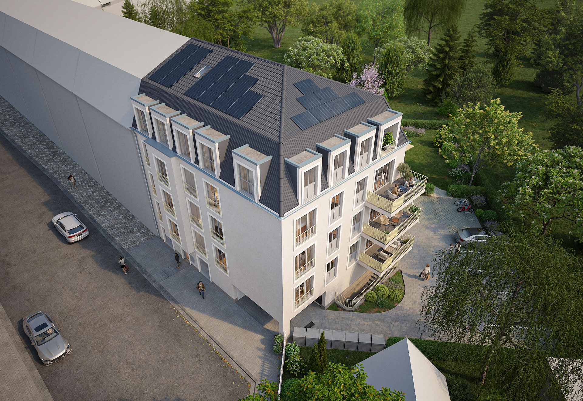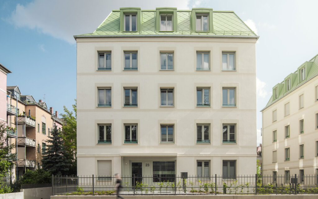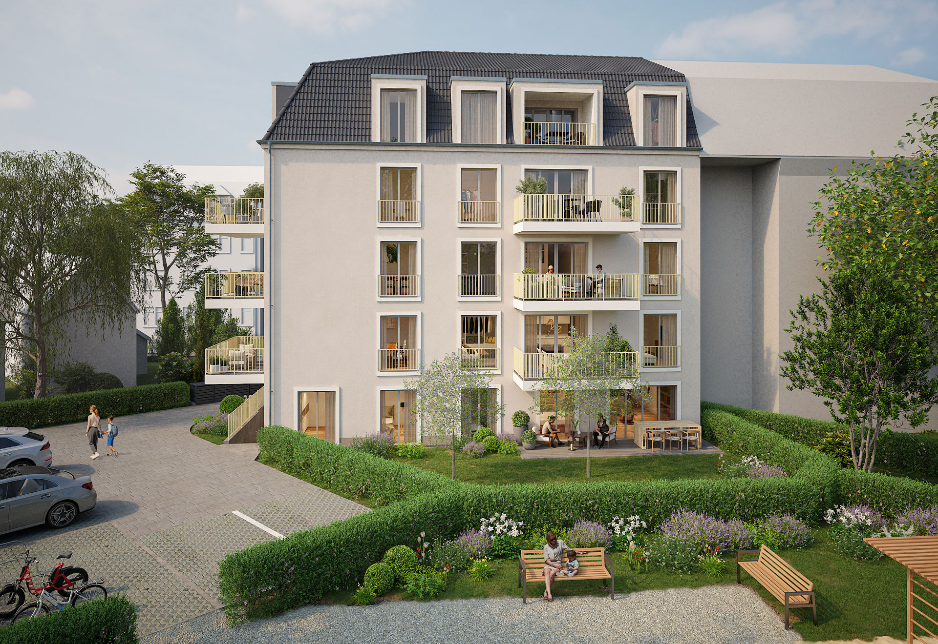 Stadthaus Laura ist ein klar strukturiertes Mehrfamilienhaus mit nur neun Wohneinheiten in einem etablierten Wohnumfeld. Die Architektur mit markantem Mansarddach fügt sich harmonisch in das historische Umfeld ein und verbindet zeitgemäße Wohnqualität mit dauerhafter Wertigkeit.