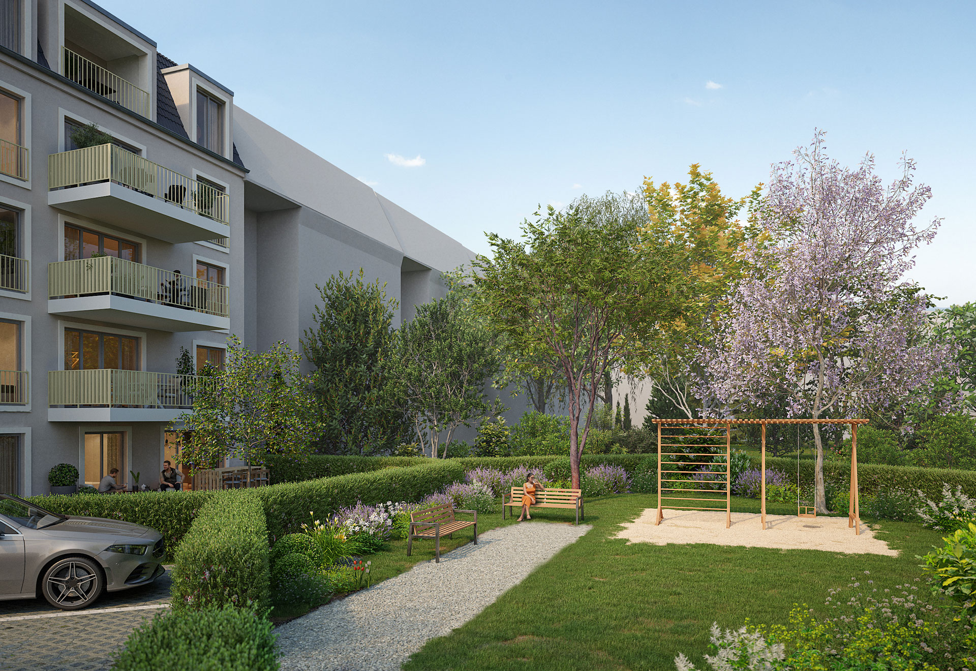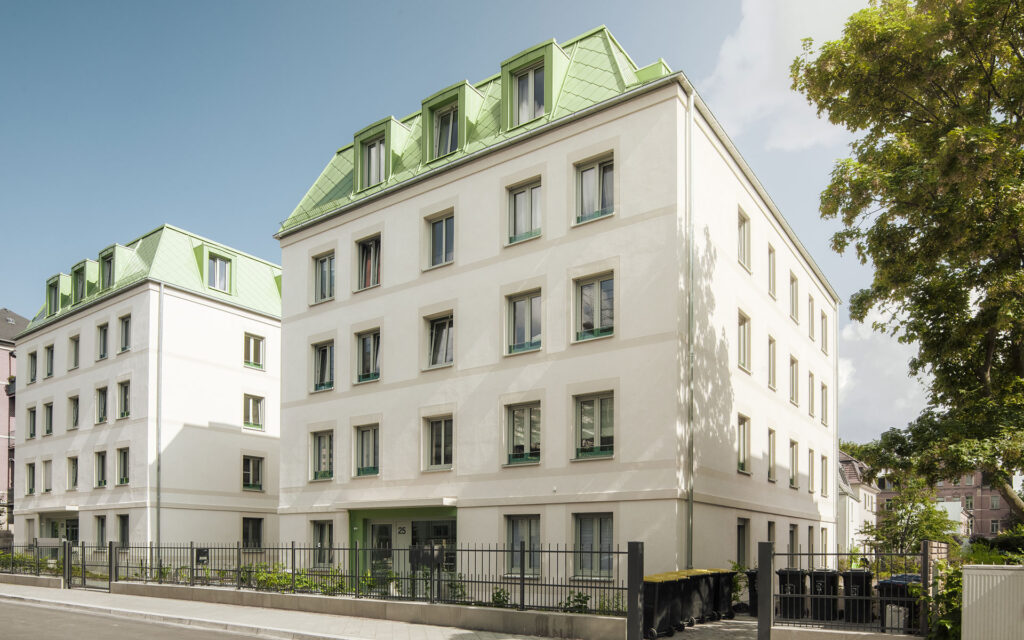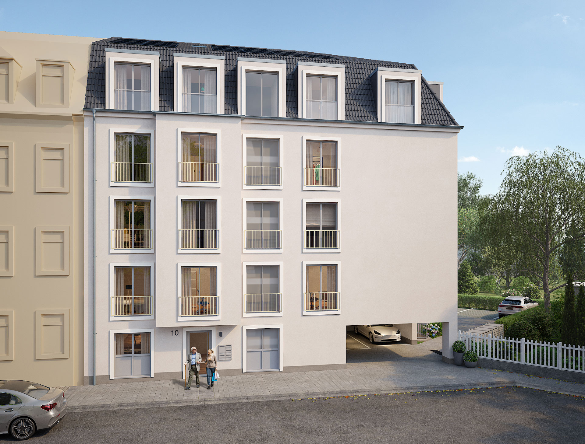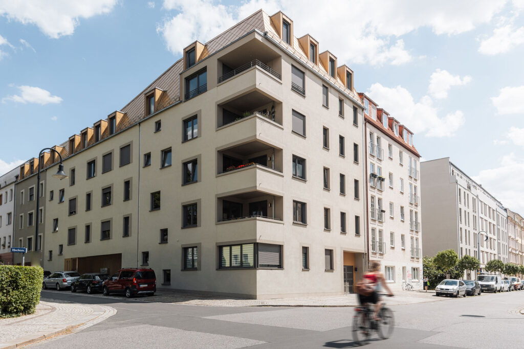 Stadthaus Laura ist ein klar strukturiertes Mehrfamilienhaus mit nur neun Wohneinheiten in einem etablierten Wohnumfeld. Die Architektur mit markantem Mansarddach fügt sich harmonisch in das historische Umfeld ein und verbindet zeitgemäße Wohnqualität mit dauerhafter Wertigkeit.