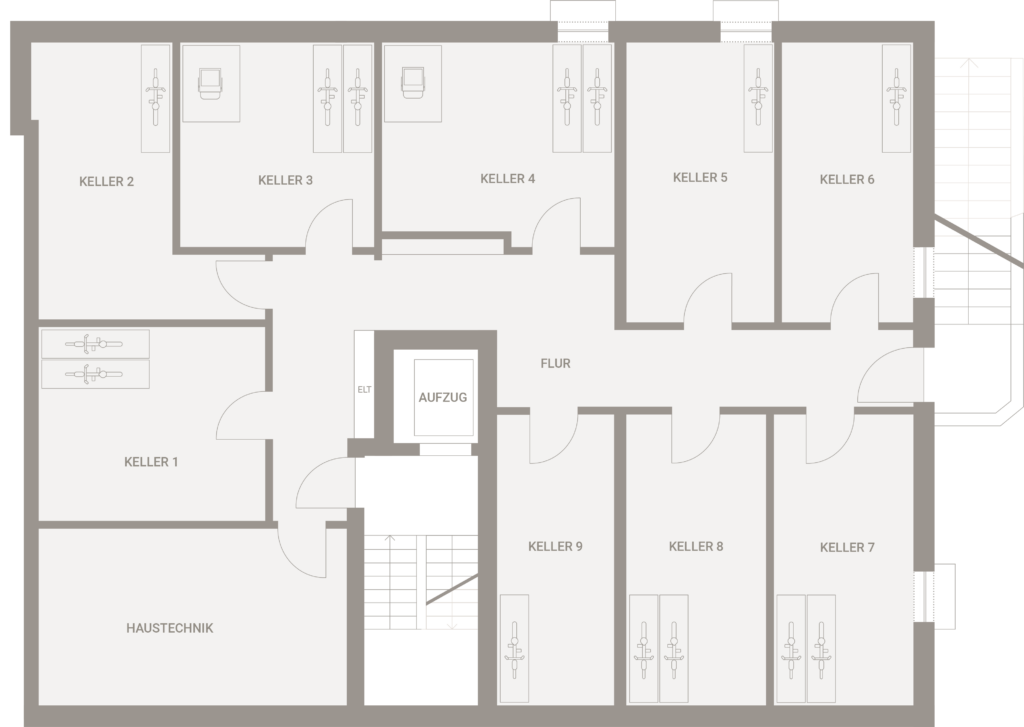 Im Untergeschoss stehen großzügige Kellerdepots mit Flächen von ca. 12,50 m² bis 16,49 m² zur Verfügung und bieten wertvollen zusätzlichen Stauraum. Ein separater Fahrradaufzug über die Treppe nach außen sorgt für hohen Komfort und ermöglicht ein bequemes sowie sicheres Handling von Fahrrädern im Alltag.